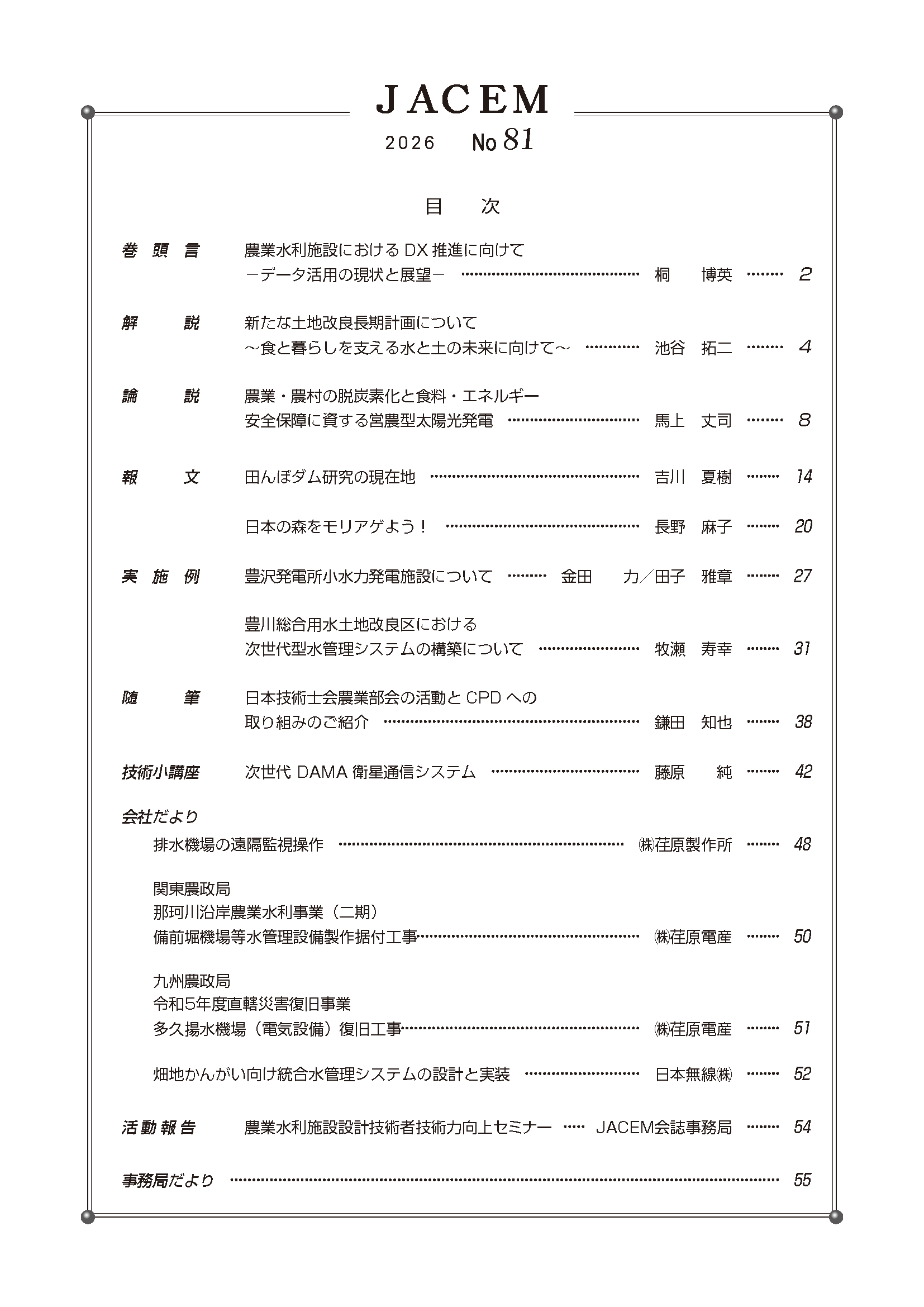 会誌JACEM(ジャセム)(旧 農業土木の機械化)バックナンバーの目次